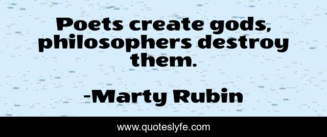 This page presents the quote "Poets create gods, philosophers destroy them.". Author of this quote is Marty Rubin. This quote is about philosophers, gods, poets, creation, destruction,.