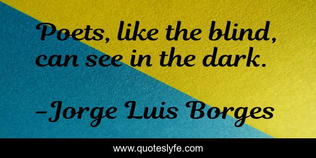 This page presents the quote "Poets, like the blind, can see in the dark.". Author of this quote is Jorge Luis Borges. This quote is about blind, poets, darkness, vision,.