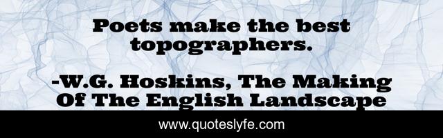 This page presents the quote "Poets make the best topographers.". Author of this quote is W.G. Hoskins, The Making Of The English Landscape. This quote is about poets, topography, observation, landscape,.