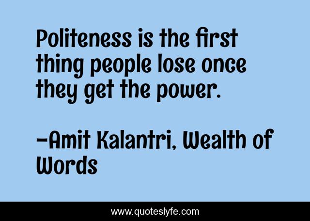 "Amit Kalantri, Wealth of Words Quotes." Quoteslyfe.com, 2025. Mon. 08 Dec. 2025. <https://www.quoteslyfe.com/quote/Politeness-is-the-first-thing-people-lose-22731>.