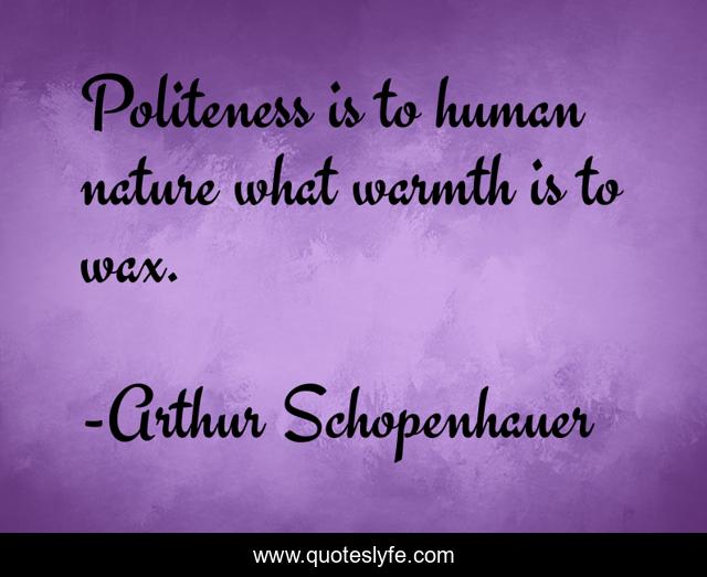 This page presents the quote "Politeness is to human nature what warmth is to wax.". Author of this quote is Arthur Schopenhauer. This quote is about human nature, human,.