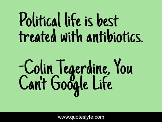 This page presents the quote "Political life is best treated with antibiotics.". Author of this quote is Colin Tegerdine, You Can't Google Life. .