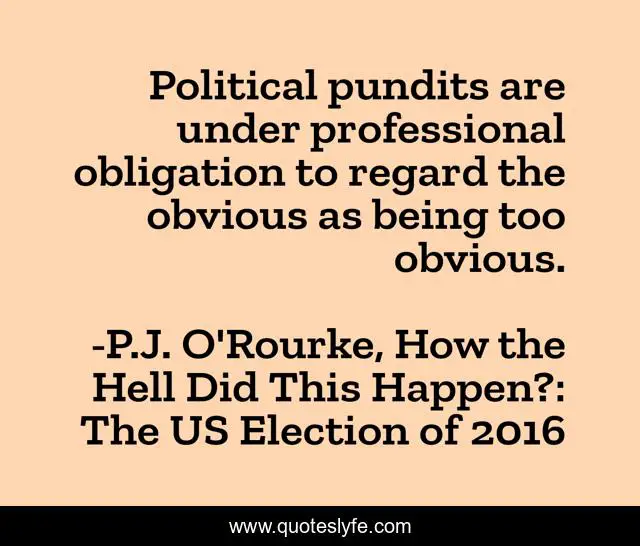 "P.J. O'Rourke, How the Hell Did This Happen?: The US Election of 2016 Quotes." Quoteslyfe.com, 2025. Fri. 05 Dec. 2025. <https://www.quoteslyfe.com/quote/Political-pundits-are-under-professional-obligation-to-57188>.