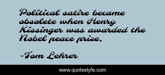 This page presents the quote "Political satire became obsolete when Henry Kissinger was awarded the Nobel peace prize.". Author of this quote is Tom Lehrer. This quote is about political, satire, prize,.