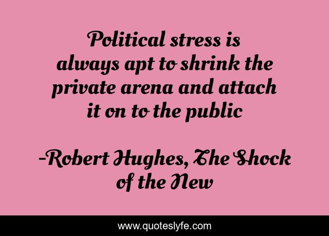 This page presents the quote "Political stress is always apt to shrink the private arena and attach it on to the public". Author of this quote is Robert Hughes, The Shock of the New. This quote is about politics, public, privacy,.