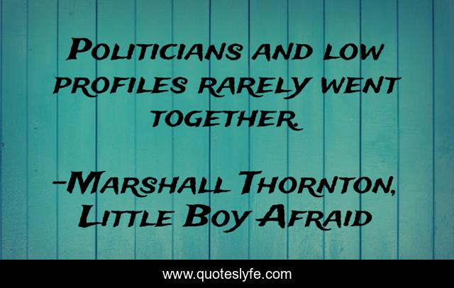 "Marshall Thornton, Little Boy Afraid Quotes." Quoteslyfe.com, 2025. Sat. 06 Dec. 2025. <https://www.quoteslyfe.com/quote/Politicians-and-low-profiles-rarely-went-together-257733>.