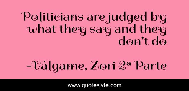 "Válgame, Zori 2ª Parte Quotes." Quoteslyfe.com, 2025. Fri. 05 Dec. 2025. <https://www.quoteslyfe.com/quote/Politicians-are-judged-by-what-they-say-257796>.