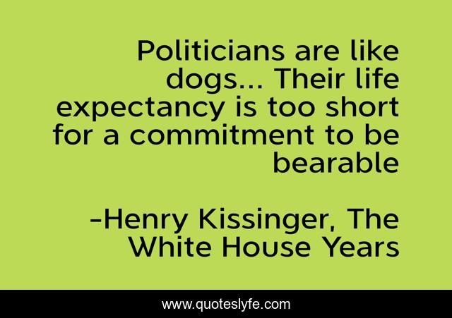 "Henry Kissinger, The White House Years Quotes." Quoteslyfe.com, 2025. Sat. 06 Dec. 2025. <https://www.quoteslyfe.com/quote/Politicians-are-like-dogs-Their-life-expectancy-56760>.