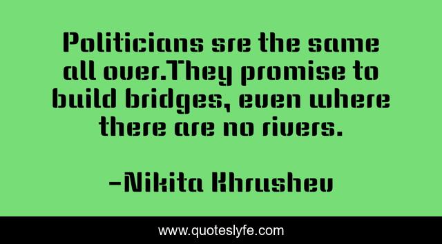 This page presents the quote "Politicians sre the same all over.They promise to build bridges, even where there are no rivers.". Author of this quote is Nikita Khrushev. This quote is about politics, economy, fact, politic,.