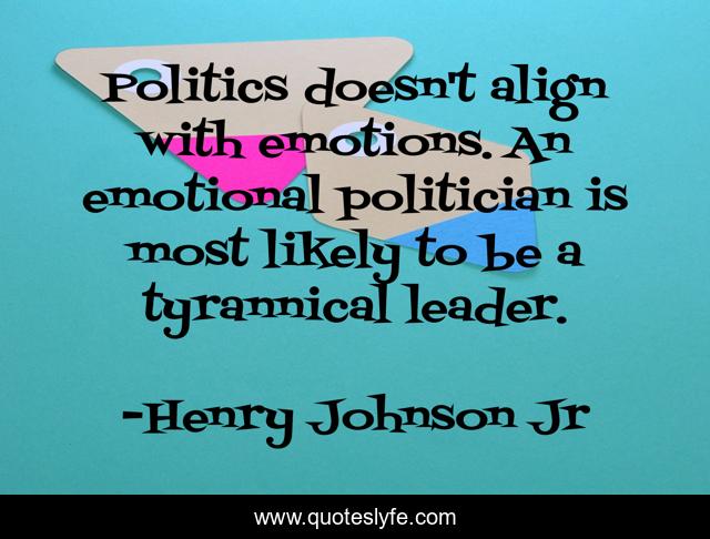 This page presents the quote "Politics doesn't align with emotions. An emotional politician is most likely to be a tyrannical leader.". Author of this quote is Henry Johnson Jr. This quote is about politics, politicians, emotions, tyrannical,.