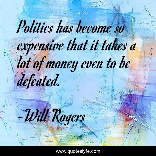 "Will Rogers Quotes." Quoteslyfe.com, 2025. Tue. 09 Dec. 2025. <https://www.quoteslyfe.com/quote/Politics-has-become-so-expensive-that-it-318656>.