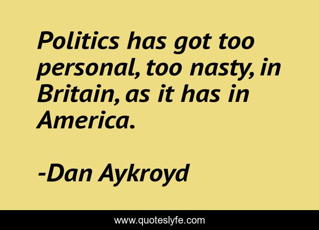 This page presents the quote "Politics has got too personal, too nasty, in Britain, as it has in America.". Author of this quote is Dan Aykroyd. This quote is about personal, nasty, america,.