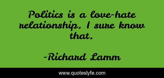 This page presents the quote "Politics is a love-hate relationship. I sure know that.". Author of this quote is Richard Lamm. This quote is about sure, relationship,.