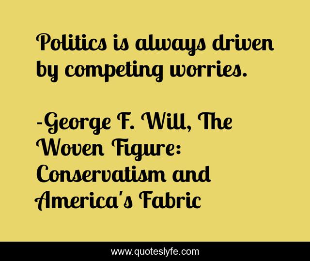 "George F. Will, The Woven Figure: Conservatism and America's Fabric Quotes." Quoteslyfe.com, 2025. Fri. 05 Dec. 2025. <https://www.quoteslyfe.com/quote/Politics-is-always-driven-by-competing-worries-160944>.