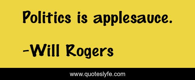 This page presents the quote "Politics is applesauce.". Author of this quote is Will Rogers. .