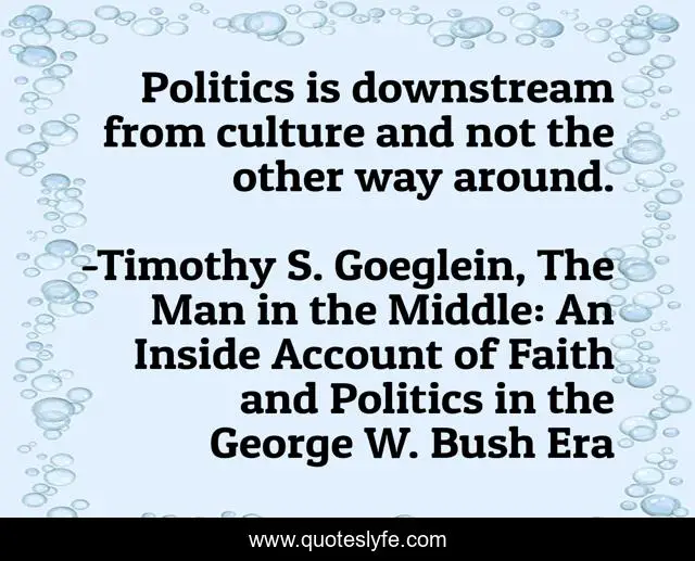 "Timothy S. Goeglein, The Man in the Middle: An Inside Account of Faith and Politics in the George W. Bush Era Quotes." Quoteslyfe.com, 2025. Sun. 07 Dec. 2025. <https://www.quoteslyfe.com/quote/Politics-is-downstream-from-culture-and-not-56978>.