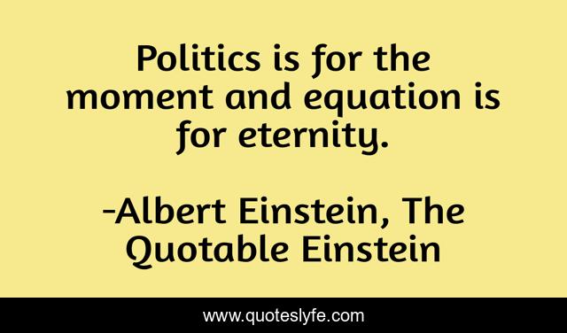 "Albert Einstein, The Quotable Einstein Quotes." Quoteslyfe.com, 2025. Sat. 06 Dec. 2025. <https://www.quoteslyfe.com/quote/Politics-is-for-the-moment-and-equation-42080>.