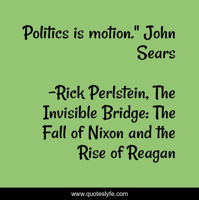 "Rick Perlstein, The Invisible Bridge: The Fall of Nixon and the Rise of Reagan Quotes." Quoteslyfe.com, 2025. Sat. 06 Dec. 2025. <https://www.quoteslyfe.com/quote/Politics-is-motion-John-Sears-60380>.