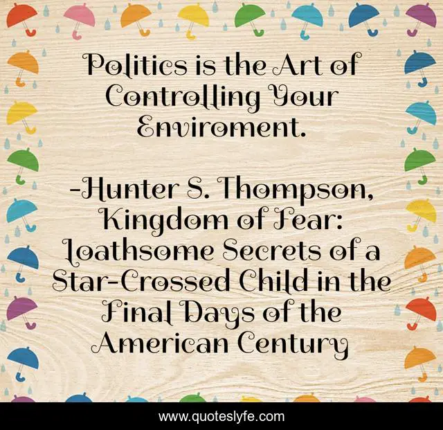"Hunter S. Thompson, Kingdom of Fear: Loathsome Secrets of a Star-Crossed Child in the Final Days of the American Century Quotes." Quoteslyfe.com, 2025. Mon. 08 Dec. 2025. <https://www.quoteslyfe.com/quote/Politics-is-the-Art-of-Controlling-Your-56663>.
