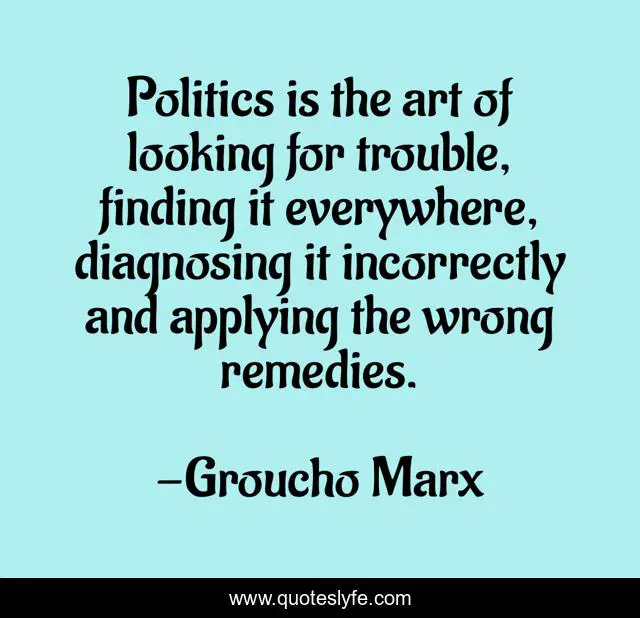 "Groucho Marx Quotes." Quoteslyfe.com, 2025. Mon. 08 Dec. 2025. <https://www.quoteslyfe.com/quote/Politics-is-the-art-of-looking-for-56507>.