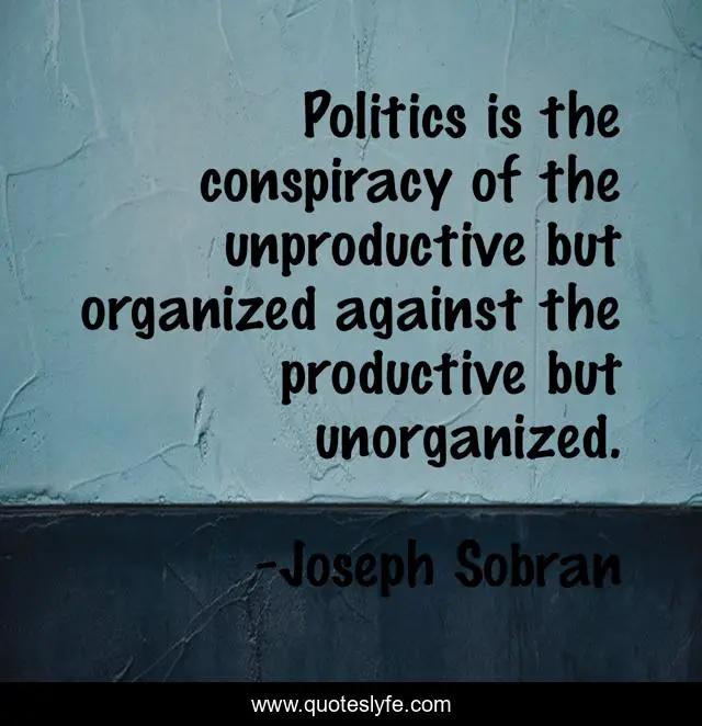 "Joseph Sobran Quotes." Quoteslyfe.com, 2025. Mon. 08 Dec. 2025. <https://www.quoteslyfe.com/quote/Politics-is-the-conspiracy-of-the-unproductive-318512>.