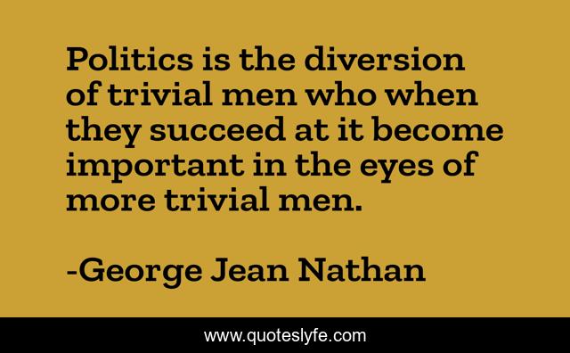 This page presents the quote "Politics is the diversion of trivial men who when they succeed at it become important in the eyes of more trivial men.". Author of this quote is George Jean Nathan. .