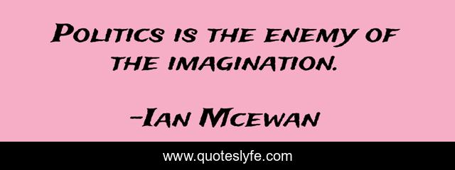 This page presents the quote "Politics is the enemy of the imagination.". Author of this quote is Ian Mcewan. This quote is about politics, enemy,.
