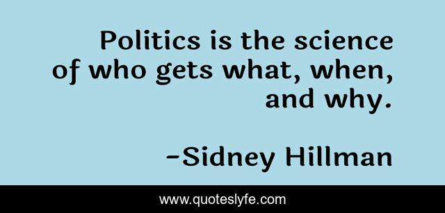 "Sidney Hillman Quotes." Quoteslyfe.com, 2025. Sun. 07 Dec. 2025. <https://www.quoteslyfe.com/quote/Politics-is-the-science-of-who-gets-318830>.