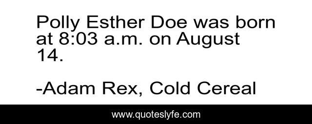 "Adam Rex, Cold Cereal Quotes." Quoteslyfe.com, 2025. Sat. 06 Dec. 2025. <https://www.quoteslyfe.com/quote/Polly-Esther-Doe-was-born-at-8-41432>.
