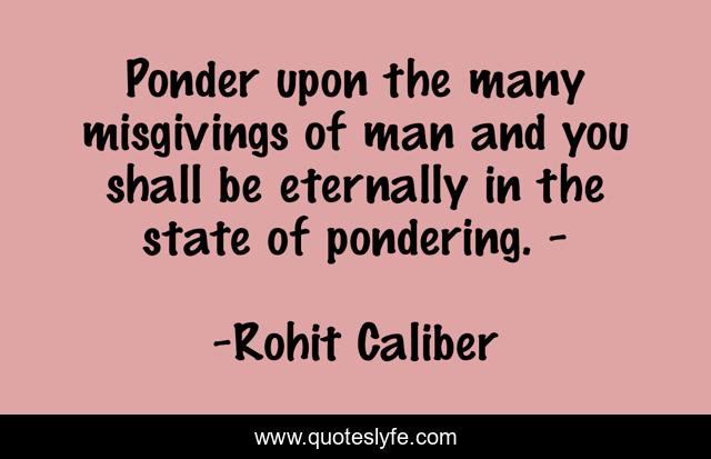 This page presents the quote "Ponder upon the many misgivings of man and you shall be eternally in the state of pondering. -". Author of this quote is Rohit Caliber. .