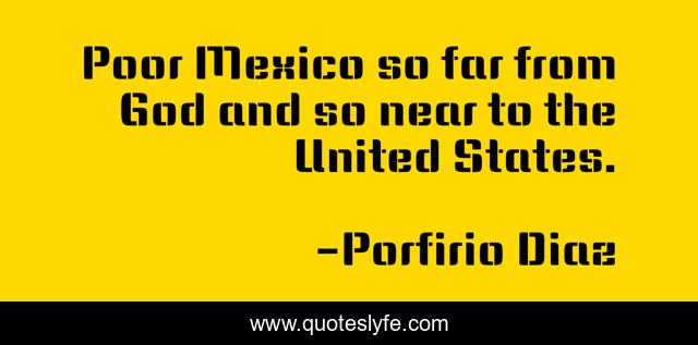 This page presents the quote "Poor Mexico so far from God and so near to the United States.". Author of this quote is Porfirio Diaz. This quote is about america, americans,.