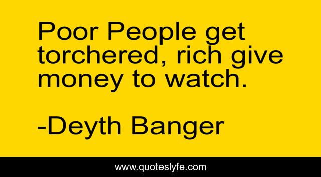 This page presents the quote "Poor People get torchered, rich give money to watch.". Author of this quote is Deyth Banger. This quote is about poor, torch, rich,.