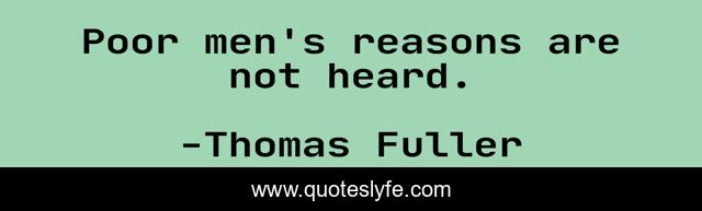 This page presents the quote "Poor men's reasons are not heard.". Author of this quote is Thomas Fuller. .