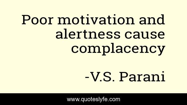 This page presents the quote "Poor motivation and alertness cause complacency". Author of this quote is V.S. Parani. This quote is about motivation, leadership, complacency, alertness,.