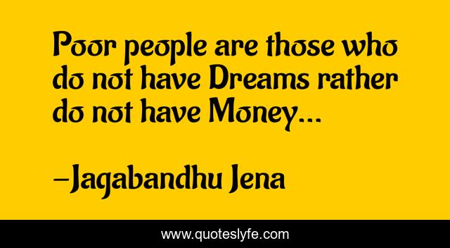 This page presents the quote "Poor people are those who do not have Dreams rather do not have Money…". Author of this quote is Jagabandhu Jena. This quote is about poor, life, positive, motivational, confidence, optimistic, inspirational, enthusiasm, dream,.