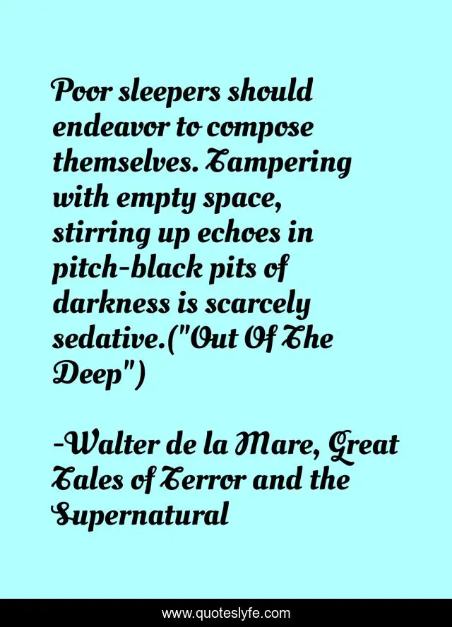 "Walter de la Mare, Great Tales of Terror and the Supernatural Quotes." Quoteslyfe.com, 2025. Fri. 05 Dec. 2025. <https://www.quoteslyfe.com/quote/Poor-sleepers-should-endeavor-to-compose-themselves-150034>.