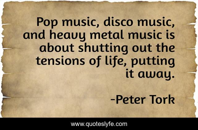 This page presents the quote "Pop music, disco music, and heavy metal music is about shutting out the tensions of life, putting it away.". Author of this quote is Peter Tork. This quote is about life, heavy metal, disco,.