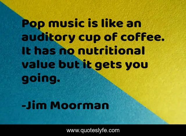 This page presents the quote "Pop music is like an auditory cup of coffee. It has no nutritional value but it gets you going.". Author of this quote is Jim Moorman. This quote is about humorous, humor,.