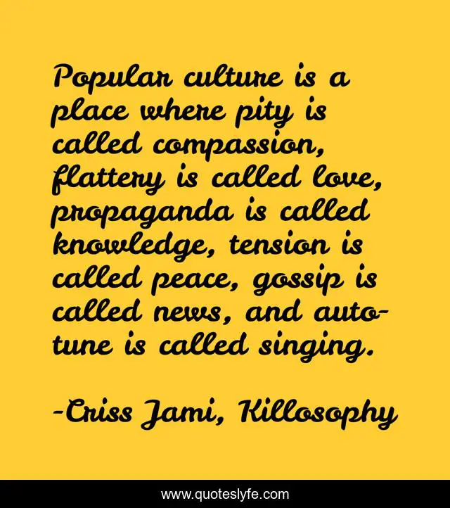 "Criss Jami, Killosophy Quotes." Quoteslyfe.com, 2025. Mon. 08 Dec. 2025. <https://www.quoteslyfe.com/quote/Popular-culture-is-a-place-where-pity-1171>.
