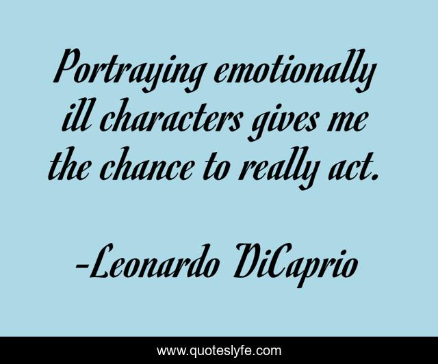 This page presents the quote "Portraying emotionally ill characters gives me the chance to really act.". Author of this quote is Leonardo DiCaprio. This quote is about me, emotionally, act,.