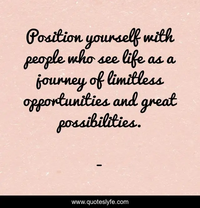 This page presents the quote "Position yourself with people who see life as a journey of limitless opportunities and great possibilities.". Author of this quote is . This quote is about amazing-opportunities, edmond-mbiaka, limitless, great-possibilities,.