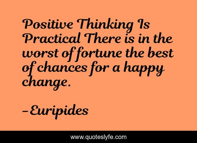 This page presents the quote "Positive Thinking Is Practical There is in the worst of fortune the best of chances for a happy change.". Author of this quote is Euripides. This quote is about positive, confidence,.