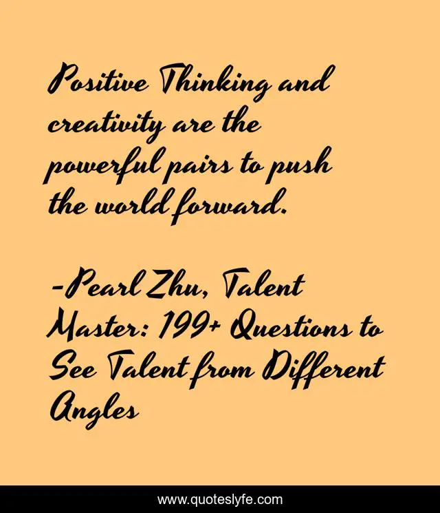 "Pearl Zhu, Talent Master: 199+ Questions to See Talent from Different Angles Quotes." Quoteslyfe.com, 2025. Fri. 05 Dec. 2025. <https://www.quoteslyfe.com/quote/Positive-Thinking-and-creativity-are-the-powerful-94674>.