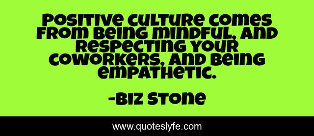 This page presents the quote "Positive culture comes from being mindful, and respecting your coworkers, and being empathetic.". Author of this quote is Biz Stone. This quote is about being, culture, coworkers,.