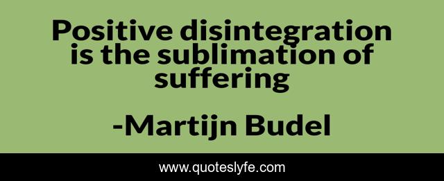 This page presents the quote "Positive disintegration is the sublimation of suffering". Author of this quote is Martijn Budel. This quote is about sublimation, existentialism, suffering, positive-disintegration,.