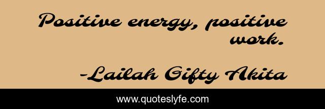 This page presents the quote "Positive energy, positive work.". Author of this quote is Lailah Gifty Akita. This quote is about positive, confidence, work, strength, encouragement,.
