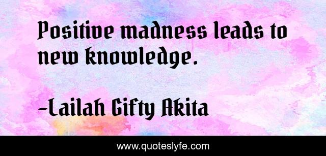 This page presents the quote "Positive madness leads to new knowledge.". Author of this quote is Lailah Gifty Akita. This quote is about confidence, madness, knowledge, positive, life-philosophy, education,.