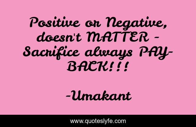 This page presents the quote "Positive or Negative, doesn't MATTER - Sacrifice always PAY-BACK!!!". Author of this quote is Umakant. .