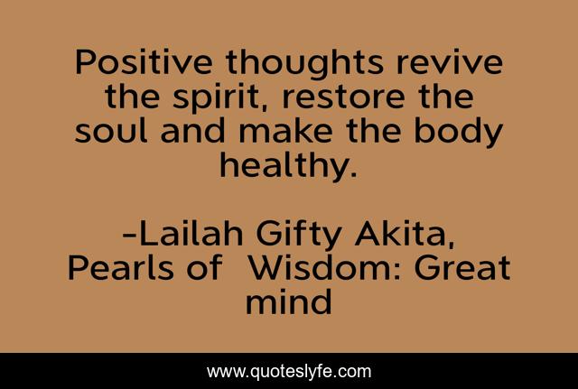 "Lailah Gifty Akita, Pearls of Wisdom: Great mind Quotes." Quoteslyfe.com, 2025. Sat. 06 Dec. 2025. <https://www.quoteslyfe.com/quote/Positive-thoughts-revive-the-spirit-restore-the-85451>.