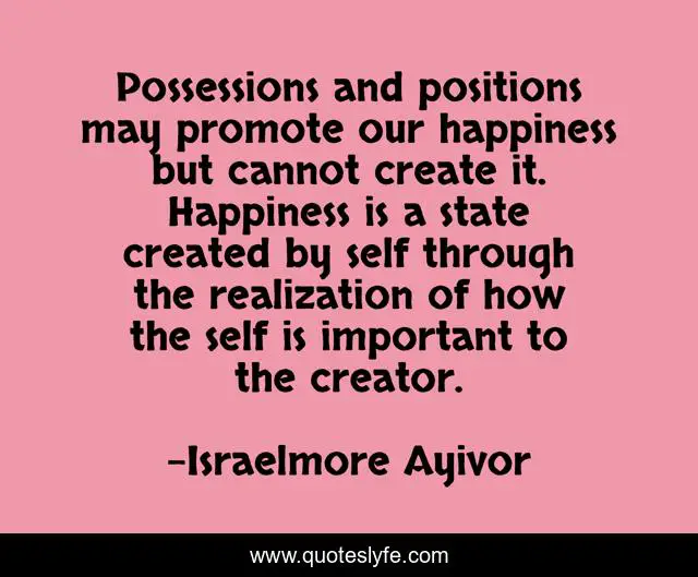"Israelmore Ayivor Quotes." Quoteslyfe.com, 2025. Tue. 09 Dec. 2025. <https://www.quoteslyfe.com/quote/Possessions-and-positions-may-promote-our-happiness-140573>.